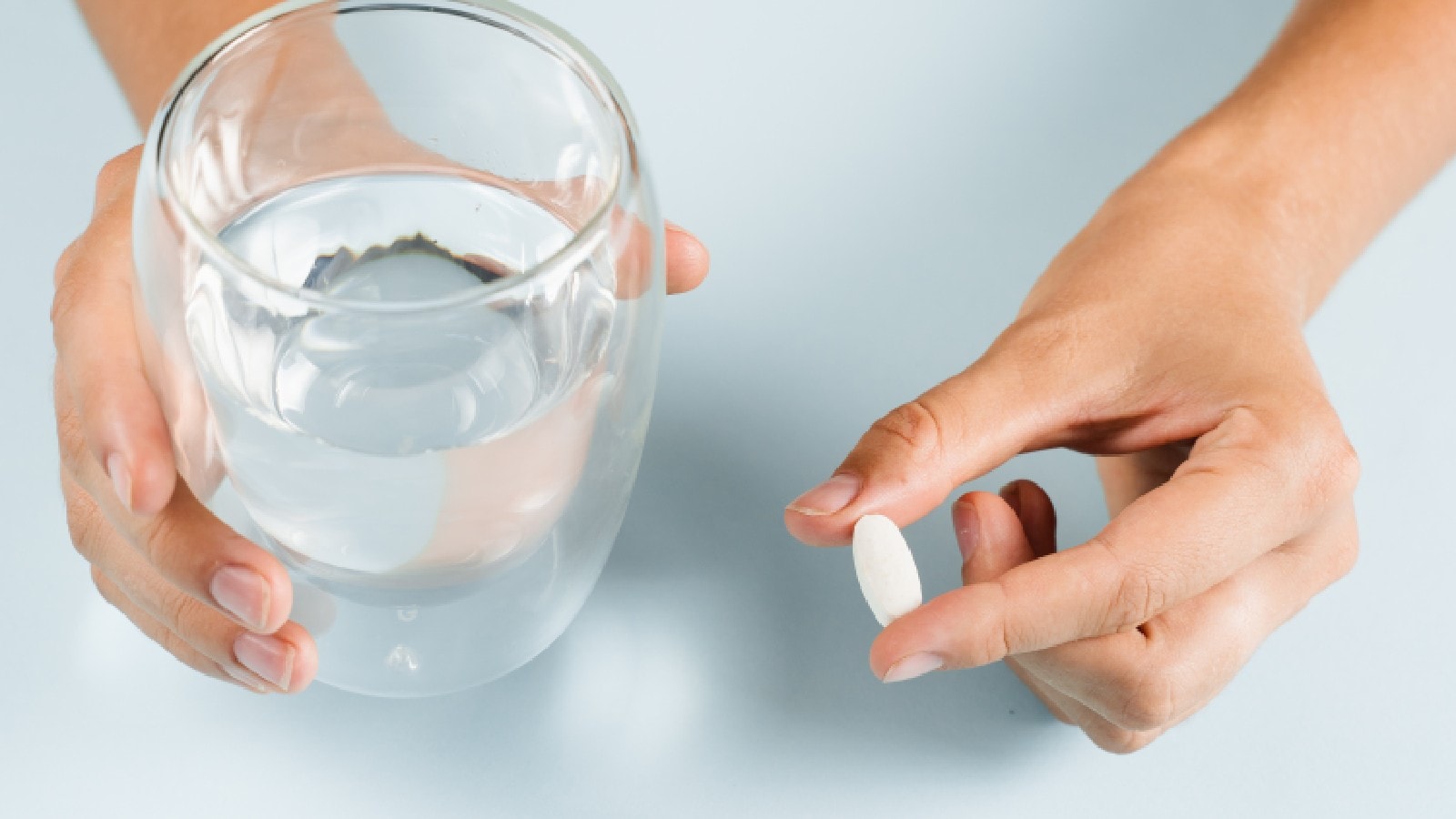 A woman eating a pill