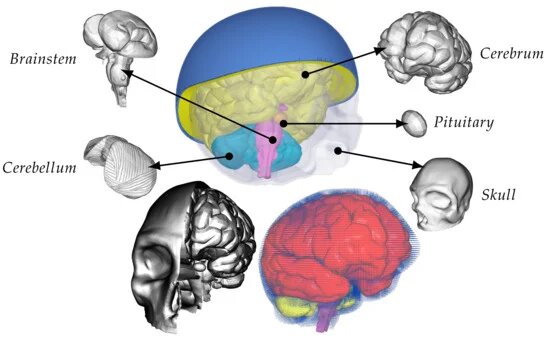 The mannequin includes completely different components such because the cranium, cerebrum, cerebellum, pituitary gland, and mind stem together with subarachnoid house and different cavities crammed with fluid particles. Moreover, displayed is half of the cranium to offer higher perception into its construction. The helmet included within the mannequin has two layers; an outer hard-shell cowl, coloured blue, for cover, and inside padding, highlighted in yellow, for consolation functions. Credit score: Utilized Sciences (2023). DOI: 10.3390/app13074544