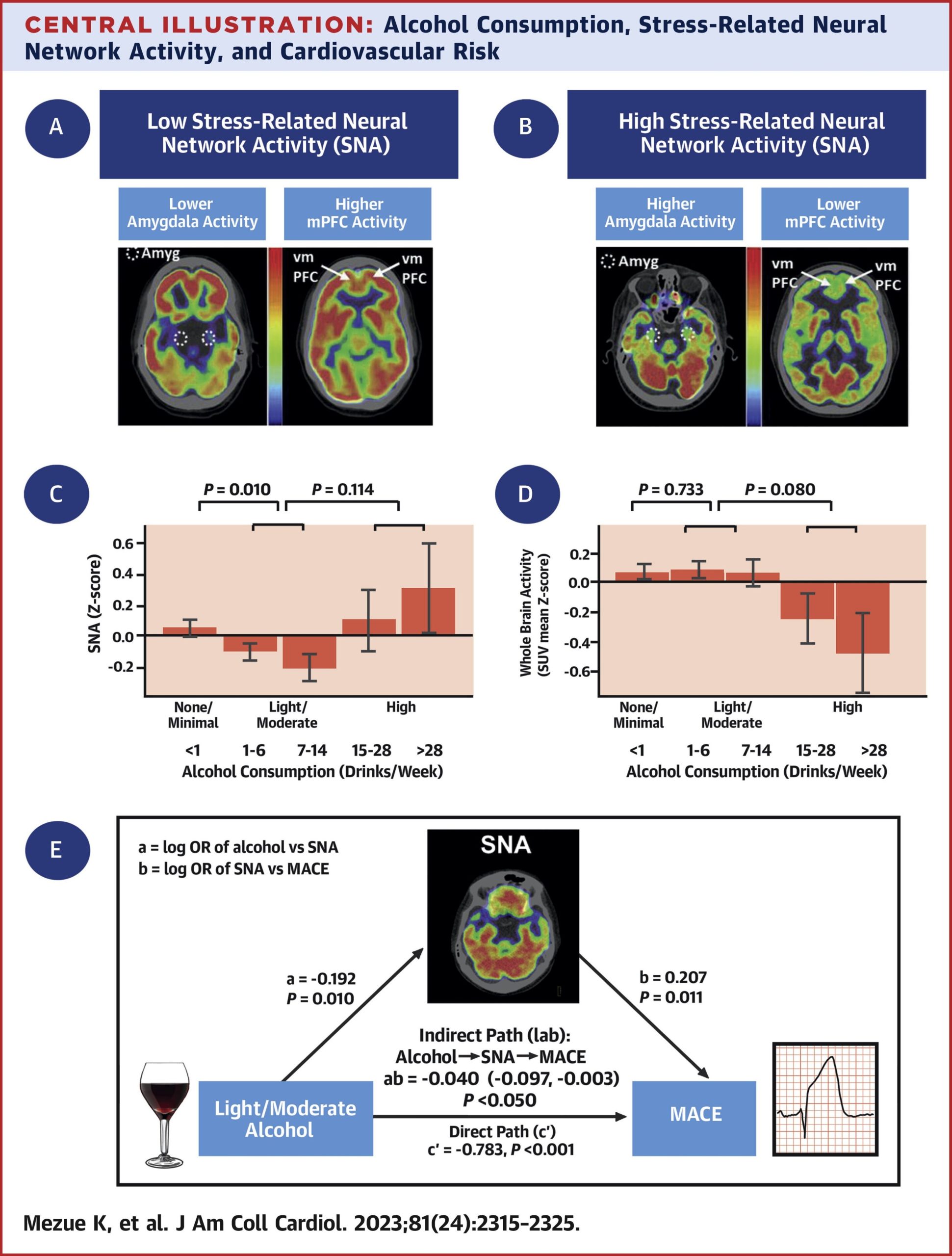 Mezue Kenechukwu et al, Decreased Stress-Associated Neural Community Exercise Mediates the Impact of Alcohol on Cardiovascular Threat, Journal of the American Faculty of Cardiology (2023). DOI: 10.1016/j.jacc.2023.04.015