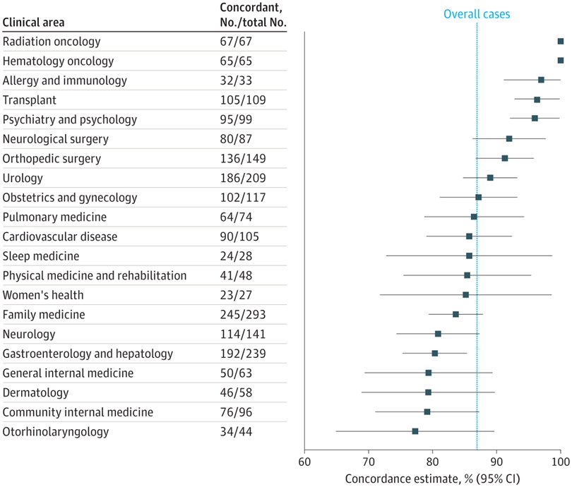 The highest price of matching telemedicine and in-person diagnoses was present in specialties that included psychiatry and psychology, allergy and immunology, orthopedics, and urology. Whereas diagnostic concordance was barely decrease in specialties comparable to dermatology and ear, nostril and throat (ENT), nonetheless, near 80% of these diagnoses had been confirmed in individual.